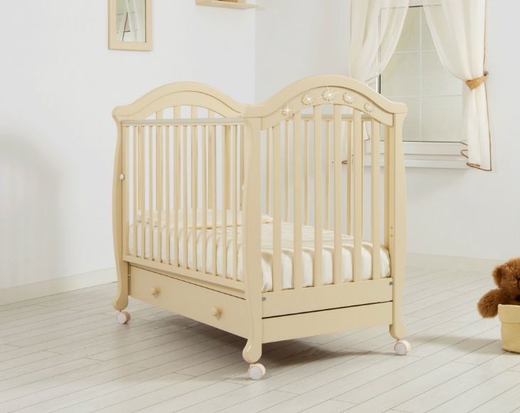 Детская кроватка «Джозеппе» фабрики Гандылян  - прекрасный вариант для детской спальни, и спокойный и здоровый сон вашего малыша.Декоративные украшения в виде цветов с искрящимися росинками, которые выполнены из стразов Swarovski, придают мягким линиям этой кроватки особую свежесть  и изысканность.