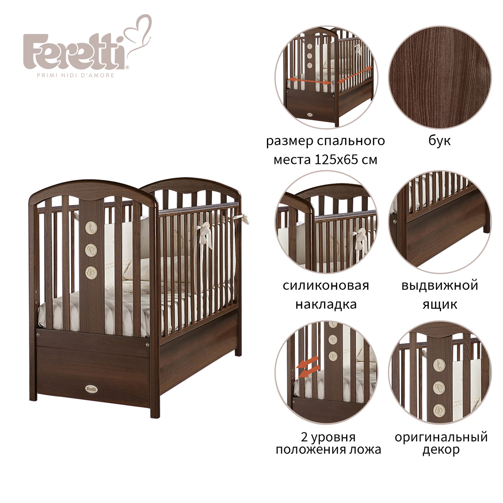 Детская кроватка FMS Elegance органично впишется в любой интерьер. Эта кроватка изготовлена итальянским производителем Feretti и украшена нежной аппликацией.