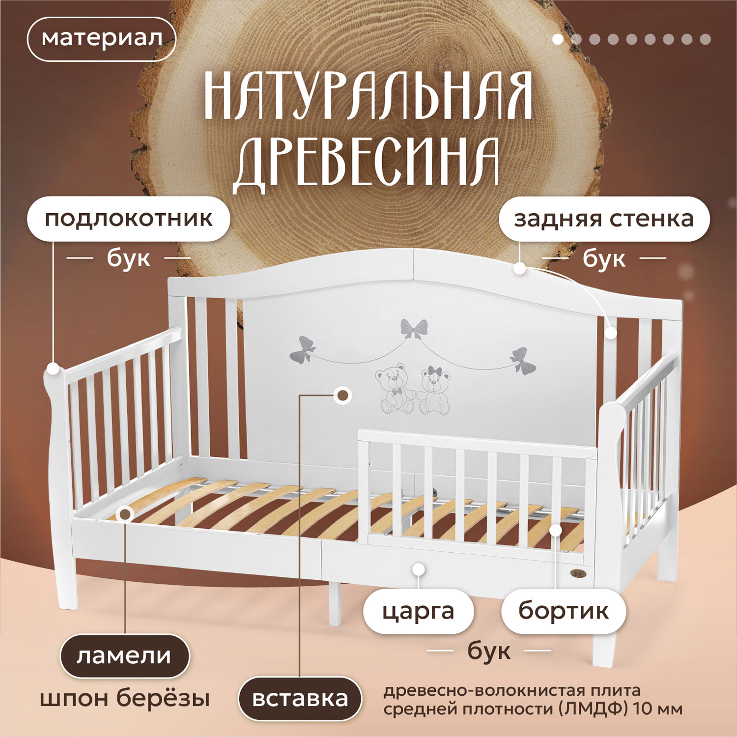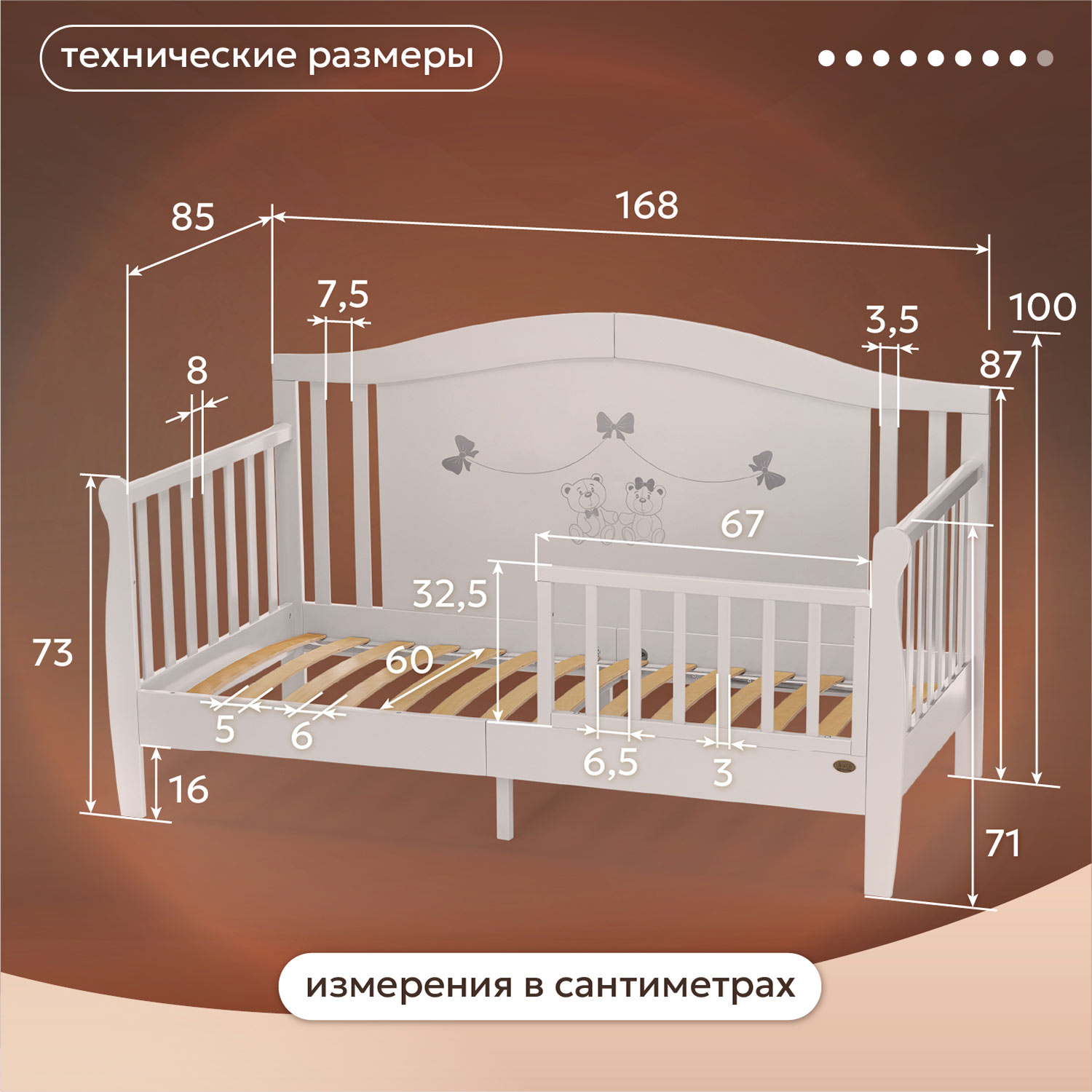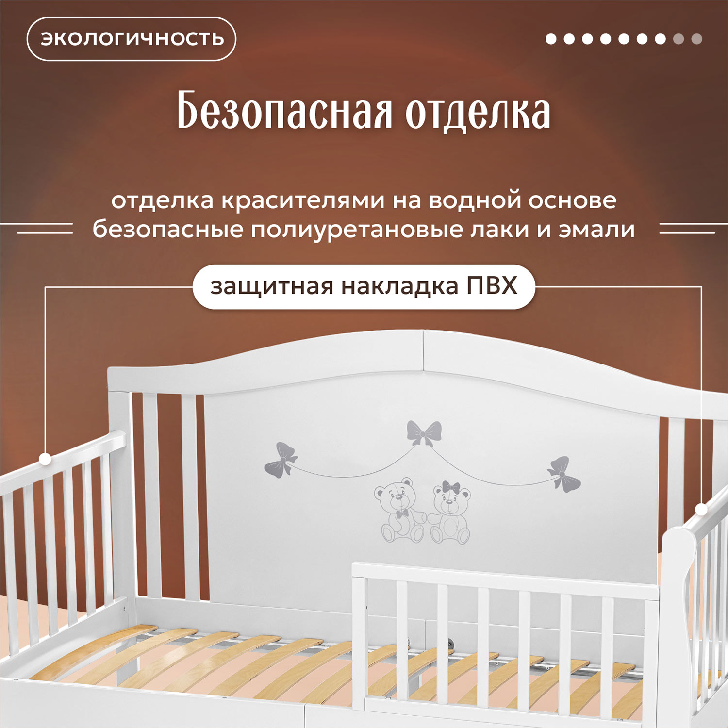 • Основание из ламелей создает условия для формирования здоровой костно-мышечной системы ребенка.