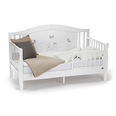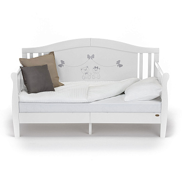 Кровать-диван Stanzione Verona Div от итальянского бренда Nuovita — это прочная и надежная кровать из натурального дерева с восхитительным дизайном. Она может использоваться как в виде спального места, так и в качестве детского диванчика. Изделие отличается высоким уровнем изготовления, и длительное время сохраняет отличный внешний вид. Все подростковые кровати Verona имеют запоминающийся декор спинки и позволяют создать неповторимый интерьер детской.