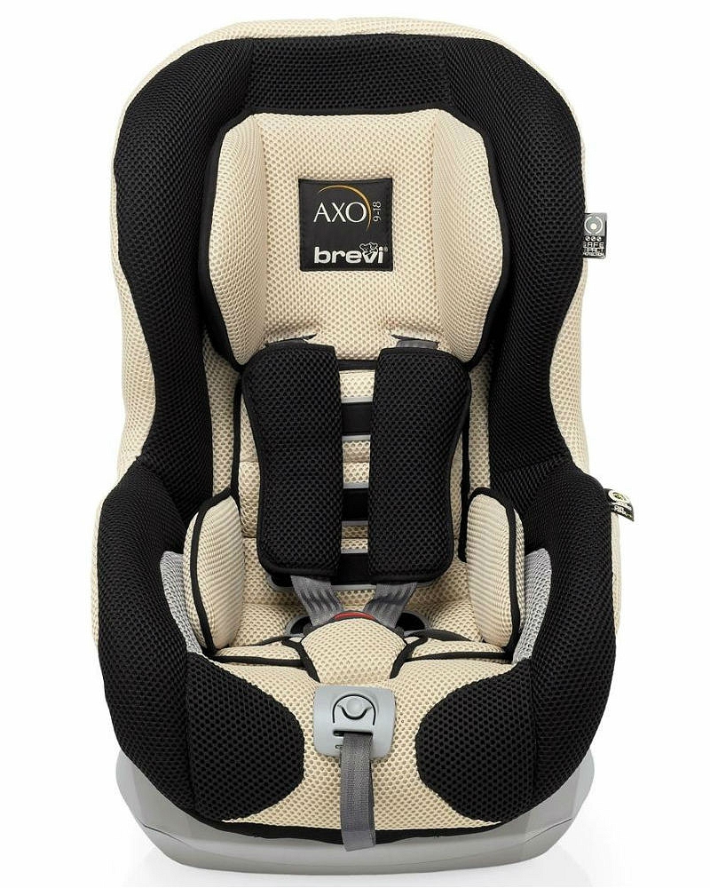 Автокресло Brevi Axo с эксклюзивным дизайном, антимикробным покрытием и инновационной запатентованной системой безопасности предназначено для перевозки маленьких детей в возрасте от 1 до 4 лет (от 9 до 18 кг (Группа 1). Сертифицировано ECE R44/04. Благодаря уникальной гидравлической системе, снижает силу ускорения в результате лобового столкновения до -18 G. В случае аварии эта система также активизирует поршень, который натягивает ремни автокресла, уменьшая смещение корпуса ребенка вперед. Удержание маленького пассажира в кресле обеспечивают широкие V-образные (трехточечные) внутренние ремни, которые имеют мягкие накладки и регулируются по высоте. Спинка регулируется в 4 позиции от положения лежа до сидячего для максимального комфорта малыша. Одновременная регулировка подголовника и ремней безопасности в 6 позиций. Чехол автокресел Axo изготовлен из дышащей ткани AirFeel с антимикробной технологии Sanitized.