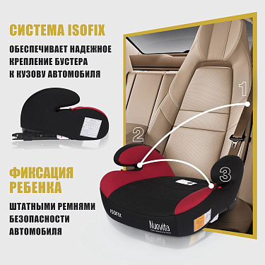 Обеспечить безопасную перевозку подросшего ребенка поможет бустер Maczione NBi-1. Это удерживающее устройство разработано с учетом анатомических особенностей детей в возрасте от 6 до 12 лет: его ширина и глубина позволяют маленькому пассажиру удобно разместиться в автомобиле, а высота рассчитана на правильное расположение штатных ремней безопасности относительно тела ребенка. Бустер предусматривает надежное крепление к кузову автомобиля при помощи системы ISOFIX. Если же автомобиль не оборудован скобами ISOFIX, бустер можно использовать с применением только штатных ремней безопасности. Дополнительный комфорт эксплуатации обеспечивают мягкий тканевый чехол и толстый слой пенополиуретанового наполнителя. Безопасность устройства доказана европейскими испытаниями и подтверждена Министерством транспорта Чешской Республики.
