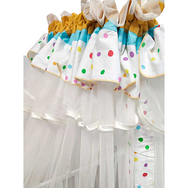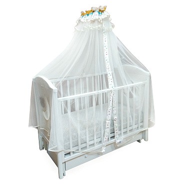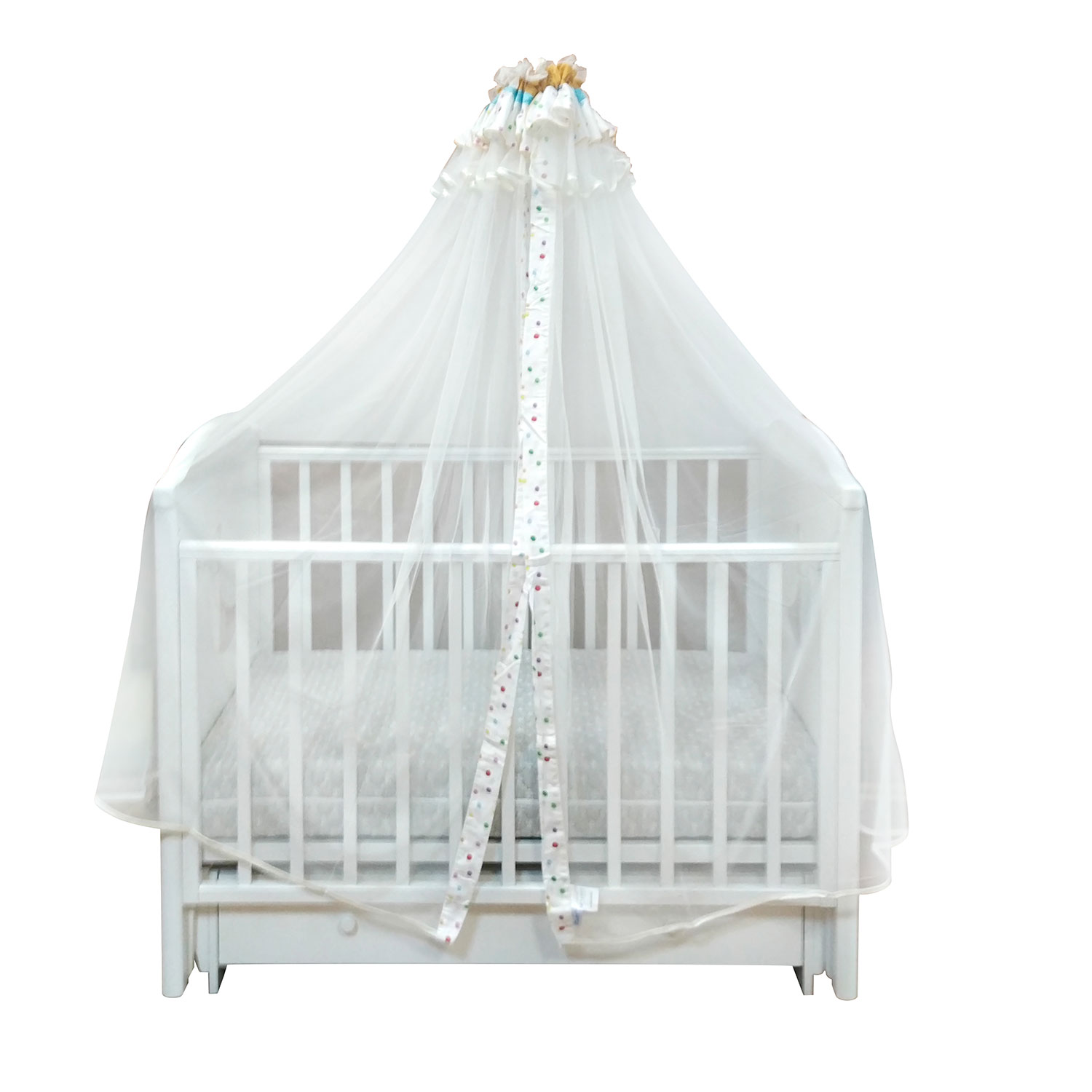 - презентабельный внешний вид. Для изготовления балдахина Feretti Puppet производитель использовал тюль, по периметру которого проходит белая атласная лента. Сверху материал декорирован прозрачным бантом.