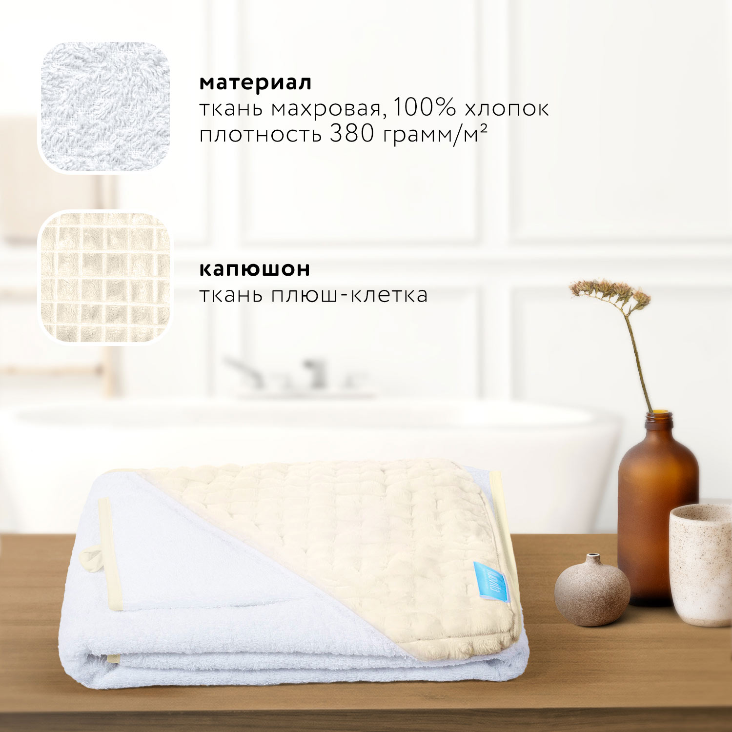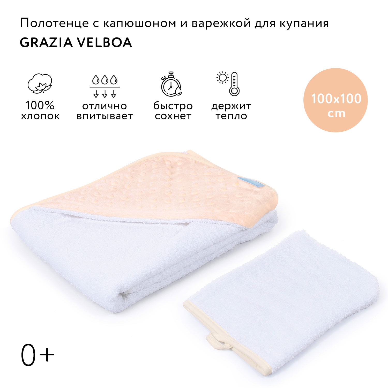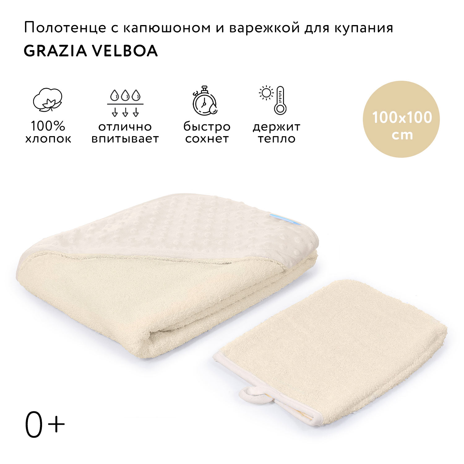 Полотенце с уголком и варежкой Nuovita Grazia, 100х100 см., махра, вельбоа
