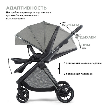 Эргономичное основание со скругленными углами и минимумом конструктивных узлов (еще один плюс к надежности и устойчивости) выполнено из анодированного алюминия, а потому отличается легкостью и одновременно прочностью и долговечностью. Эта прогулочная коляска — с реверсивным блоком: его можно установить как лицом к маме (для совсем маленьких детей), так и по ходу движения — чтобы ребенок обозревал окрестности во время прогулки, изучая окружающий мир.