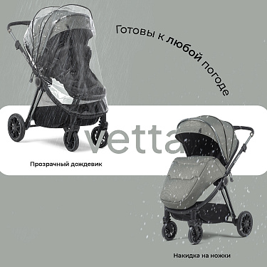 А посмотреть будет на что, ведь с прогулочной коляской для детей VETTA ограничений по маршрутам нет. Поворотные на 360° передние колеса отвечают за маневренность и легкость управления на ровном асфальте. Задние колеса увеличенного диаметра имеют повышенную про