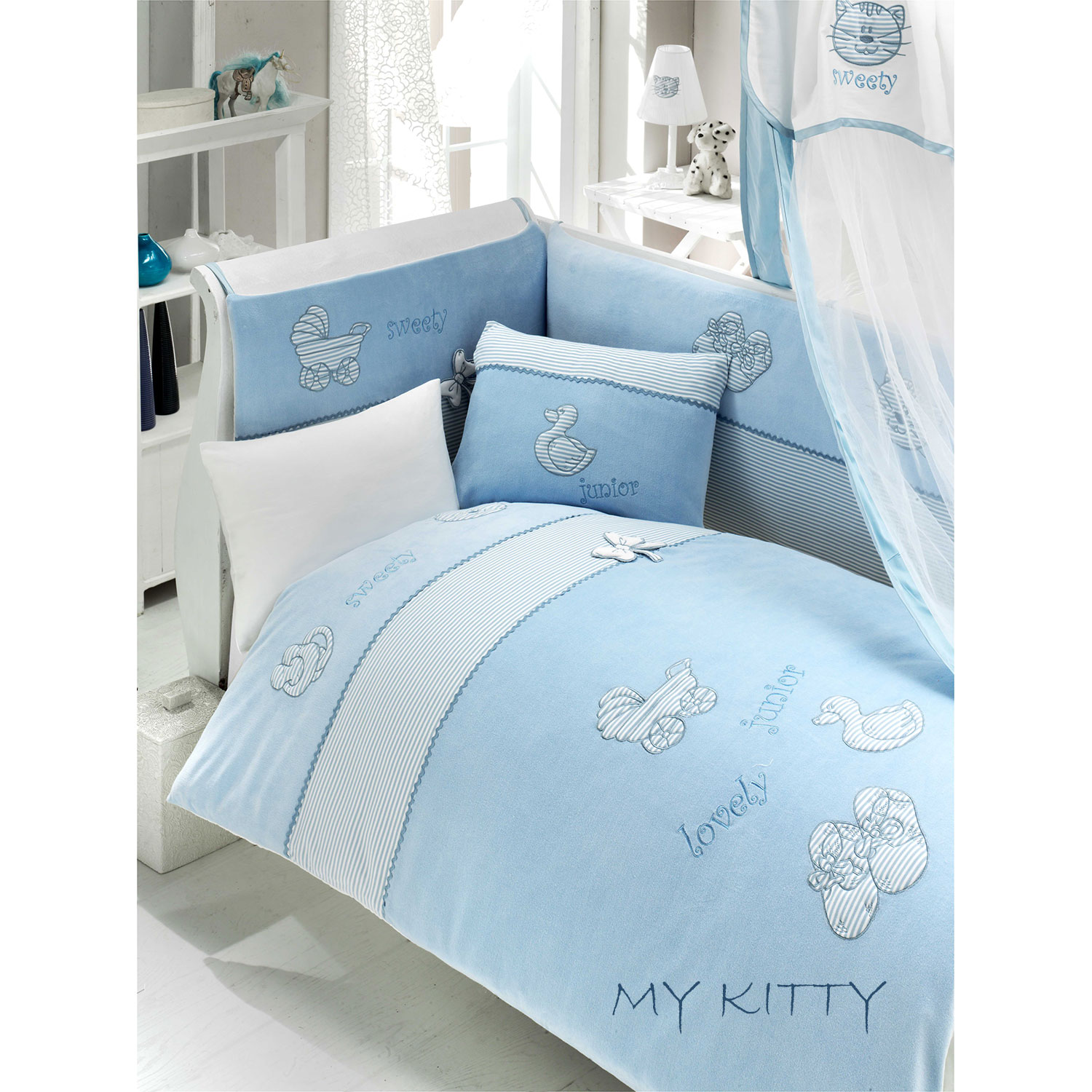 Комплект постельного белья в детскую кроватку "MY KITTY" всемирно известно торговой марки детского текстиля “BEBE LUVICCI”.
