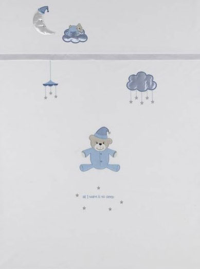 Белизна мягких бортиков оттеняется аппликацией в виде очаровательного медвежонка в пижамке, окружённого облаками. Краски декоративных элементов не полиняют благодаря современному реактивному способу нанесения.