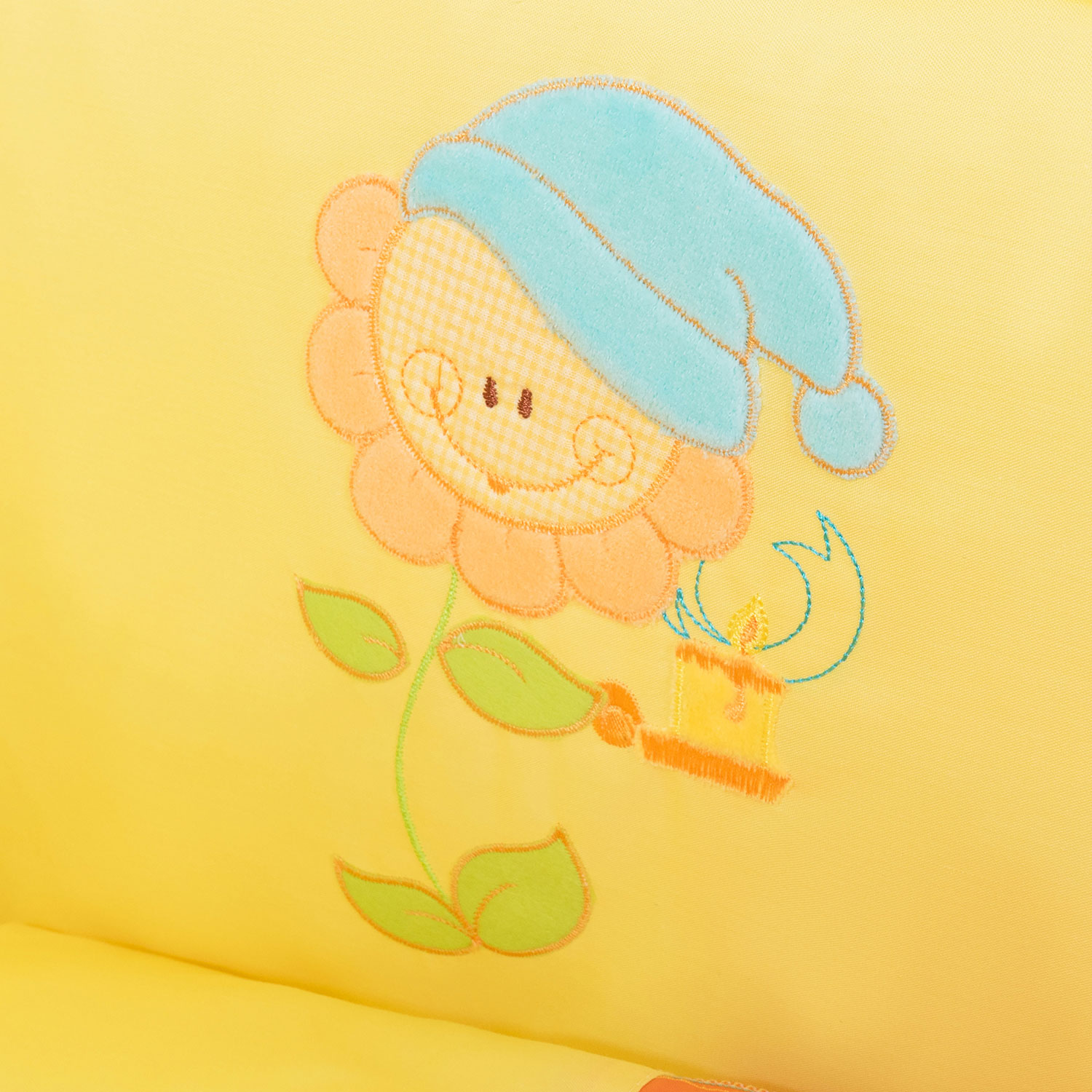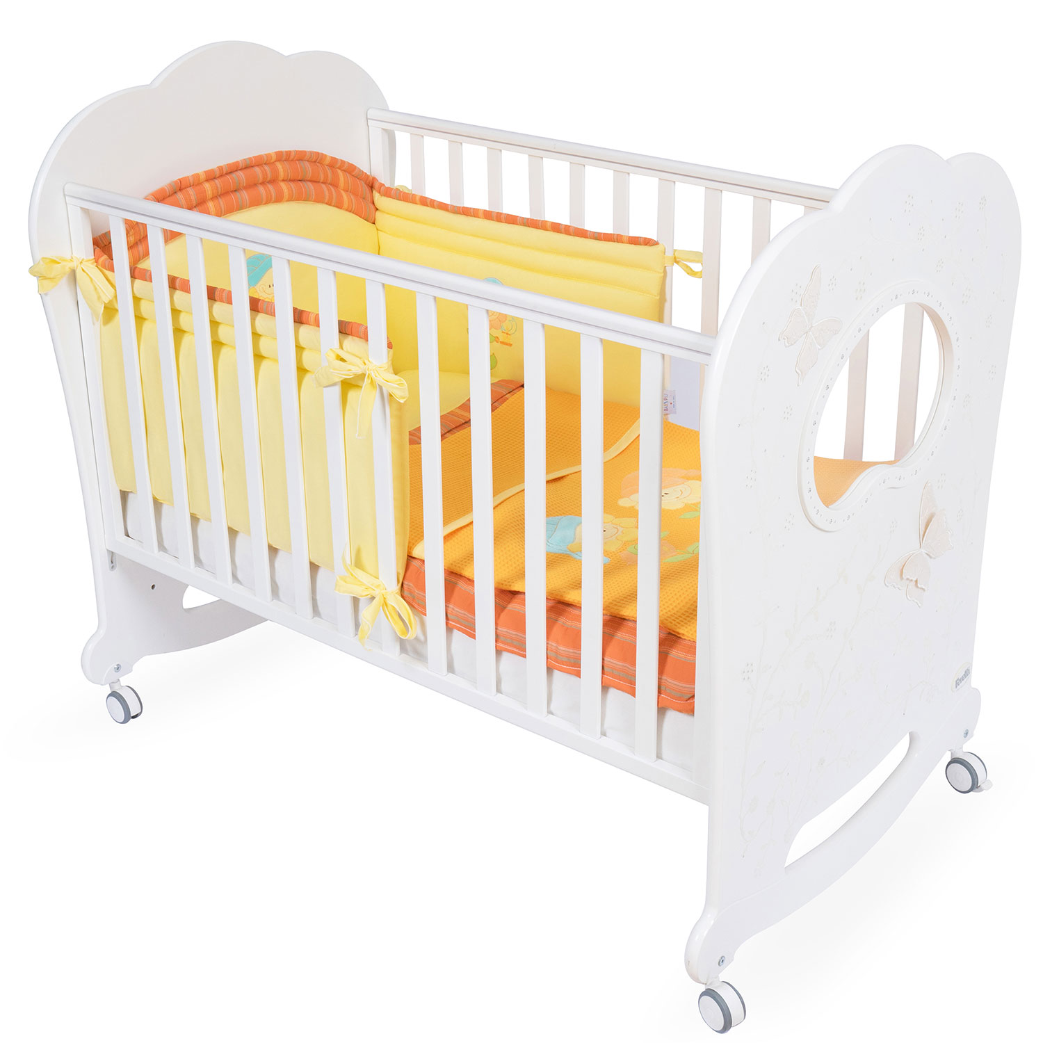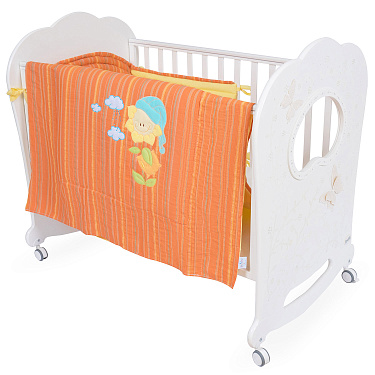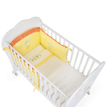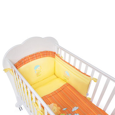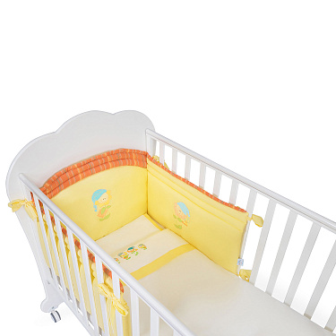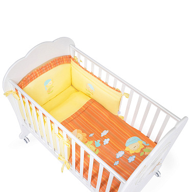 Набор постельного белья BabyPiu 03L.151BW_AR «4 времени года» 22L+56R+49C+94 в чемодане – это эксклюзивный дизайн, ткани первого сорта, с высоким качеством пошива. Набор изготовлен из муслина, кружева, отделан аппликацией, вышивкой. В комплект входят мягкие бортики на половину кроватки, одеяло утепленное, одеяло из пике (трикотажное хлопчатобумажное полотно) 150х115 сантиметров, простынь 120х170 сантиметров - 2 штуки, наволочка 40х55 сантиметров.