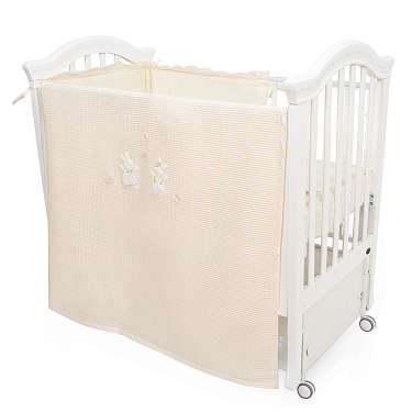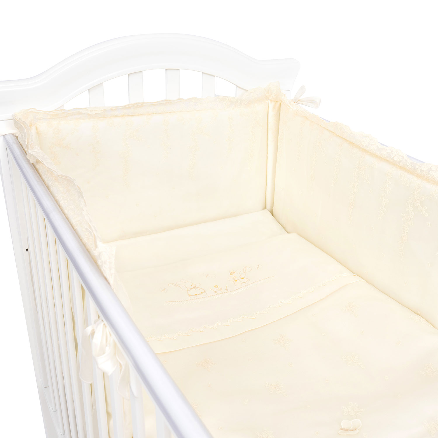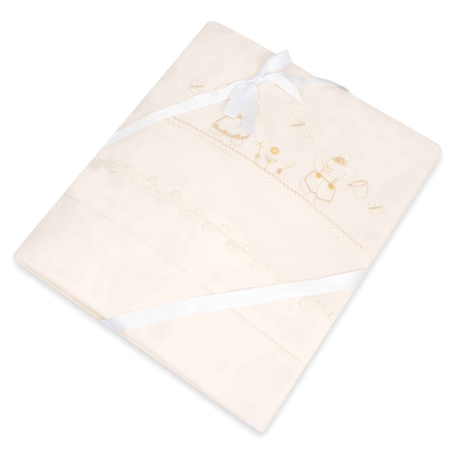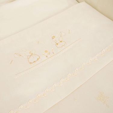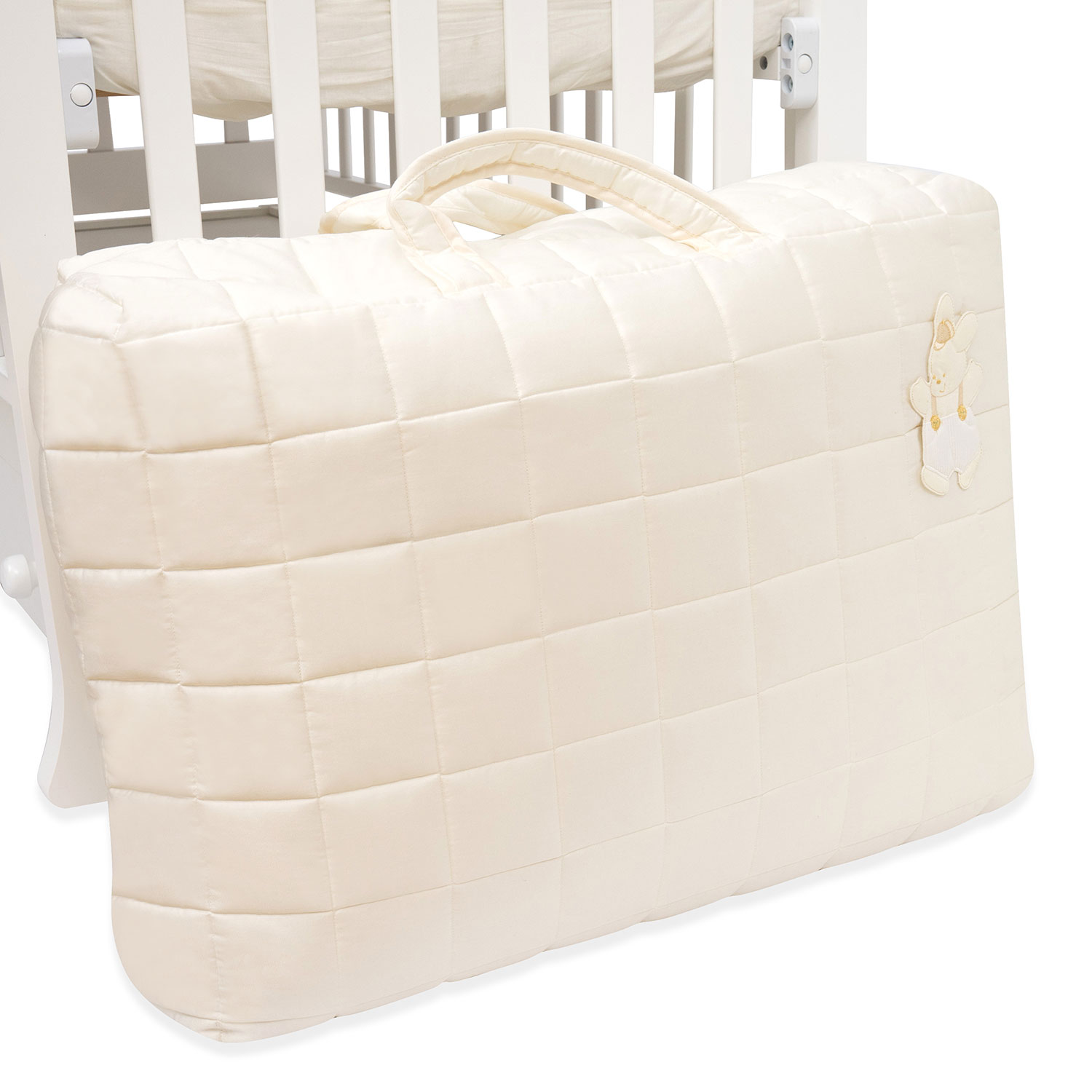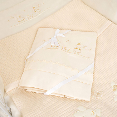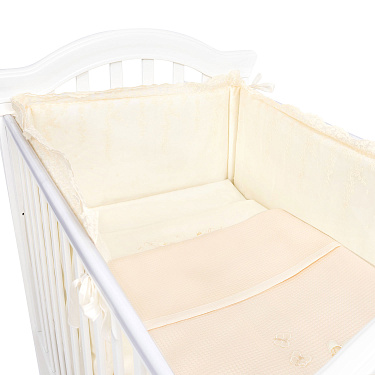 Набор постельного белья BabyPiu 03L.154BW_OR Шелковые эмоции "4 времени года" 22L-ORG+56R+49+94 в чемодане - это сочетание натуральных тканей, авторского дизайна, высочайшего качества отделки. Нежные ткани и кружева, из которых выполнен комплект, не будут раздражать детскую кожу, подарят малышу мягкость, тепло и сладкий сон. Изготовлен комплект из органзы, атласа и сатина, отделан кружевом и вышивкой. Набор комплектуется мягким бортиком на половину кроватки, одеялом утепленным, одеялом из пике (трикотажное хлопчатобумажное полотно) размером 150х115 см, простынкой 120х170 см. - 2 шт, наволочкой 40х55 см.