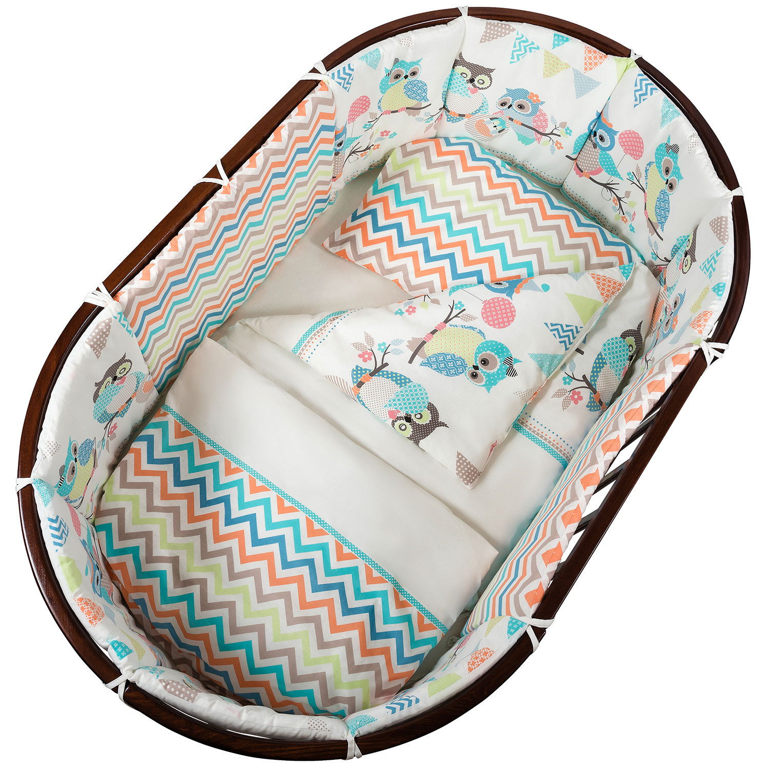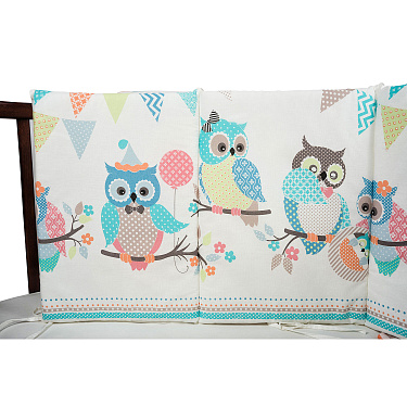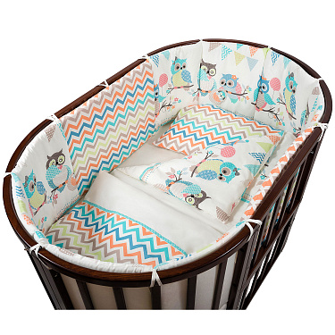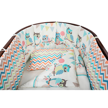 Наполнителем для бортиков, подушки и одеяла служит hollcon, который обладает рядом отличий от прочих полиэфирных материалов: не имеет в составе клея, не впитывает запахи, характеризуется отличными теплозащитными свойствами, а благодаря вертикальной технологии укладки является воздухопроницаемым. Чехлы для бортиков, простынка с резинкой, наволочка и пододеяльник изготовлены из 100% хлопкового сатина. Это материал с особой структурой нитей — благодаря технологическим особенностям производства, он имеет атласный блеск, высокое качество окраски и длительный срок службы.