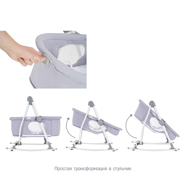 Simplicity 299777 Elite - это современная и удобная колыбель-трансформер для новорожденных, которая может использоваться не только для сна ребенка, но и в качестве люльки, качалки, шезлонга и стульчика. Благодаря возможности трансформации колыбель будет полезна с первых дней жизни ребенка и до 3-х летнего возраста.