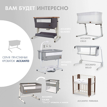 Он подходит для детской приставной кроватки Nuovita Accanto Quadro с размером спального места 81х47 см.