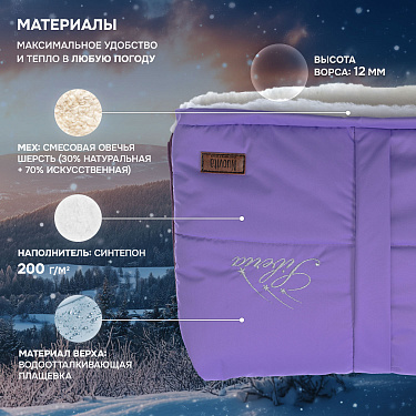 Внутри находится пушистый мягкий мех, высота которого 12 мм. Это смесовая овечья шерсть, закрепленная на текстильной основе и сохраняющая отличные теплоизолирующие свойства, присущие овчине. Объемный нежный мех согревает руки даже в сильный мороз, поскольку создает теплую воздушную прослойку, не допуская перегрева.