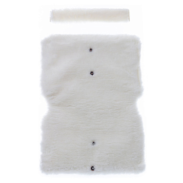 Для фиксации муфты на ручке коляски предусмотрены замки-«молнии» и две центральные кнопки. Попаданию меха в разъемы замков препятствует красивая окантовка по краям срезов. В расстегнутом виде муфту можно использовать в качестве коврика.