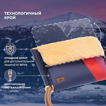 • Примечание: отворот фиксируется пластиковыми зажимами, расстегивается, дополнительная внутренняя муфта-чехол на ручку коляски.
