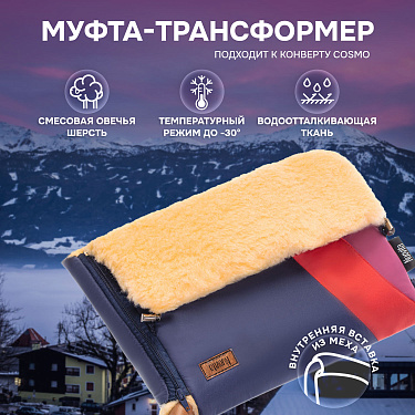 Среди моделей NUOVITA COSMO можно выбрать муфту с белым или персиковым цветом меха и различными расцветками чехла. Это позволяет составить единый комплект с меховым конвертом или подобрать муфту в тон коляски.