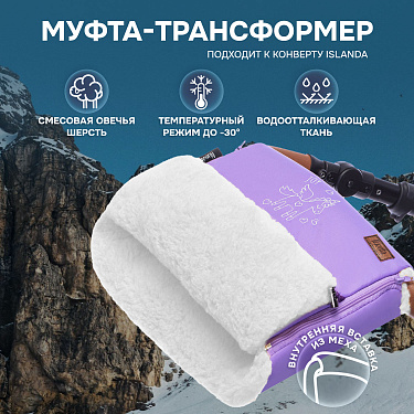 На выбор предлагаются 2 цвета меха — белый и персиковый, и 14 наружных расцветок. Удачным выбором станет использование муфты NUOVITA ISLANDA с детским меховым конвертом из одноименной коллекции.