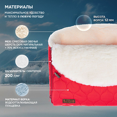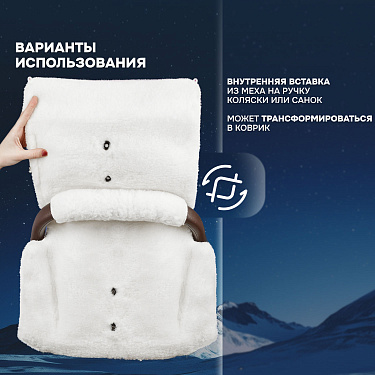 Дополнительно предусмотрена внутренняя муфта-чехол на ручку коляски. Размеры муфты в расстегнутом виде составляют 29x39см, что позволяет использовать ее в качестве детского коврика.