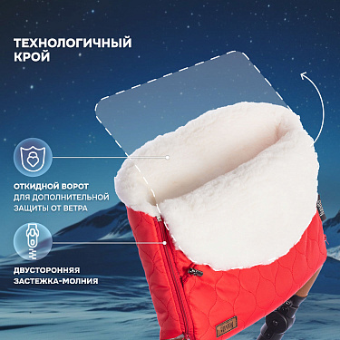 • Примечание: отворот фиксируется пластиковыми зажимами, расстегивается, дополнительная внутренняя муфта-чехол на ручку коляски.