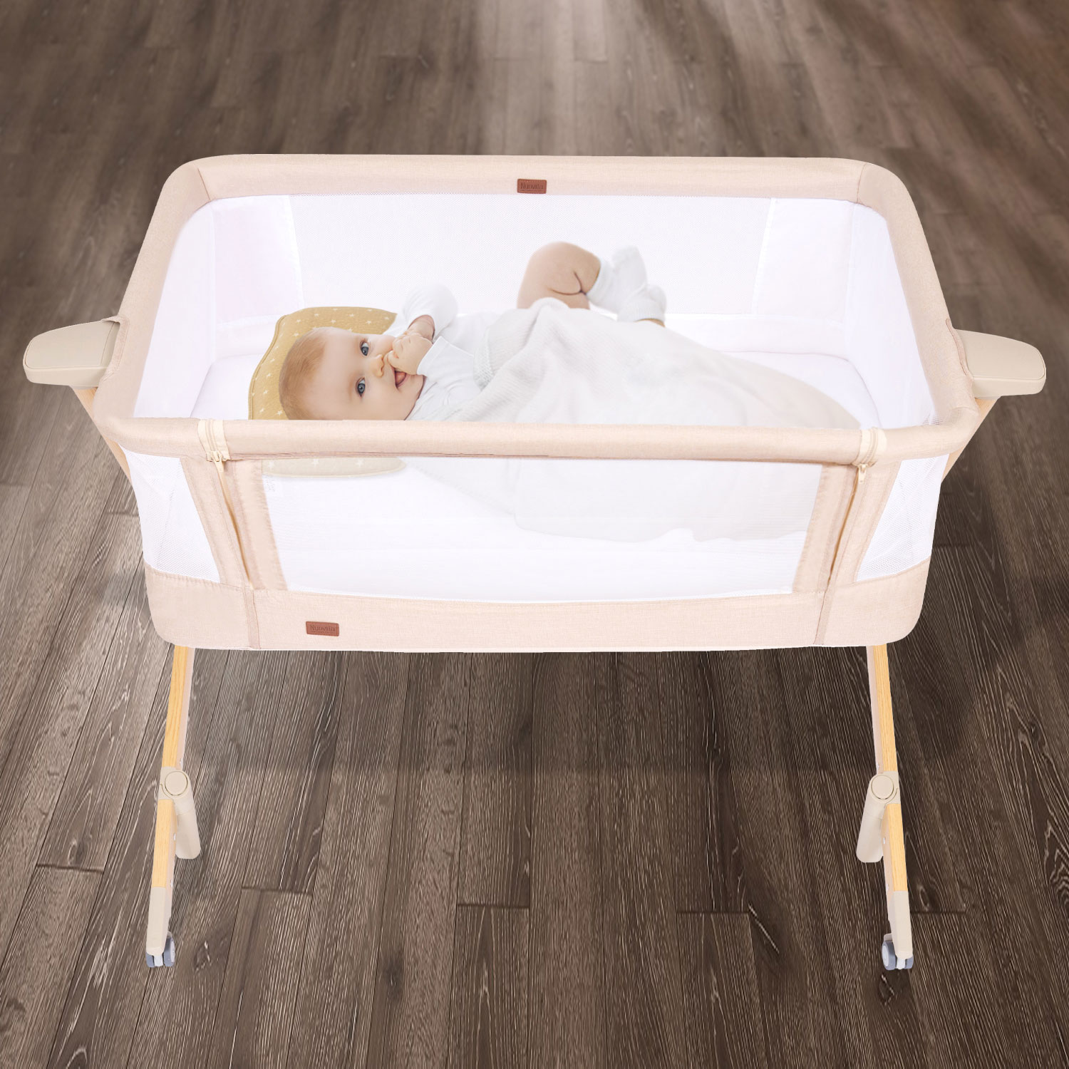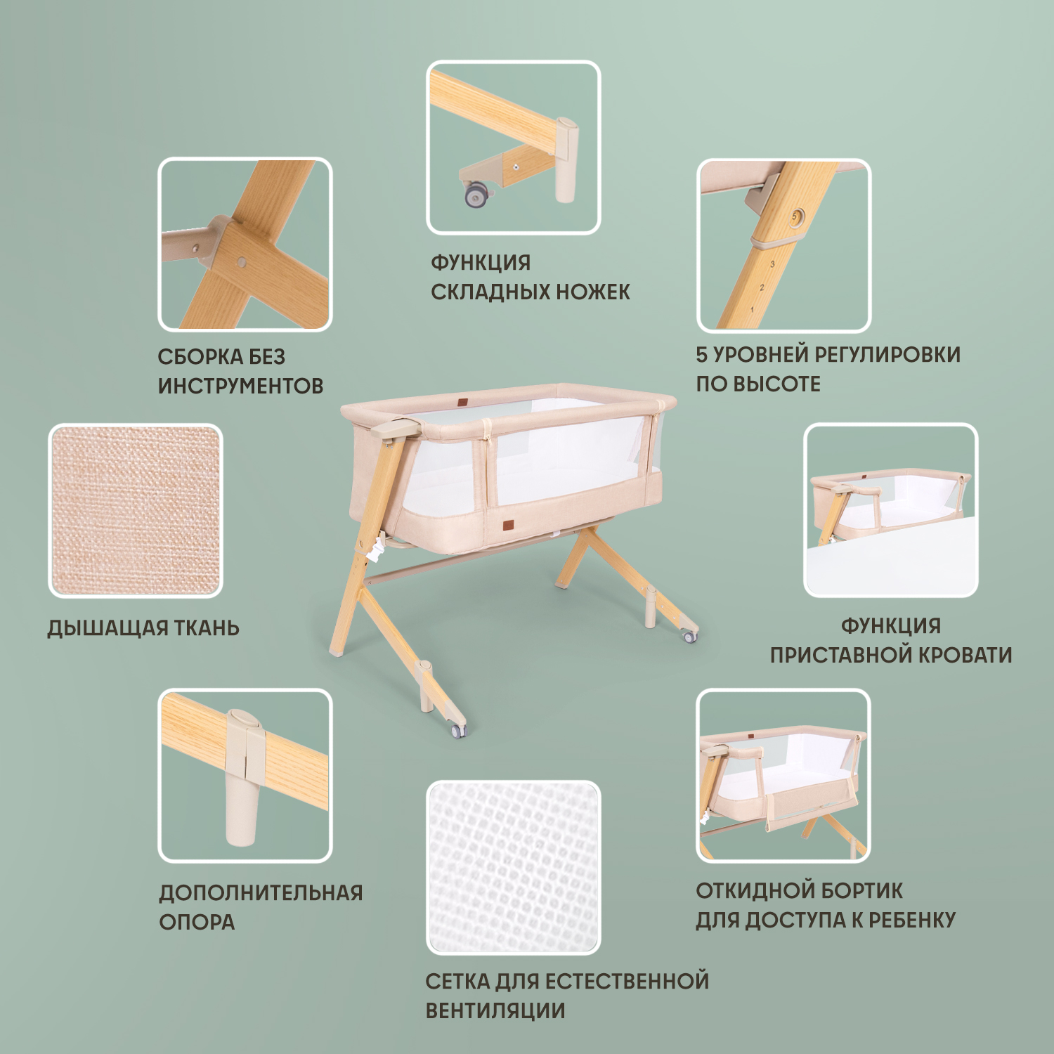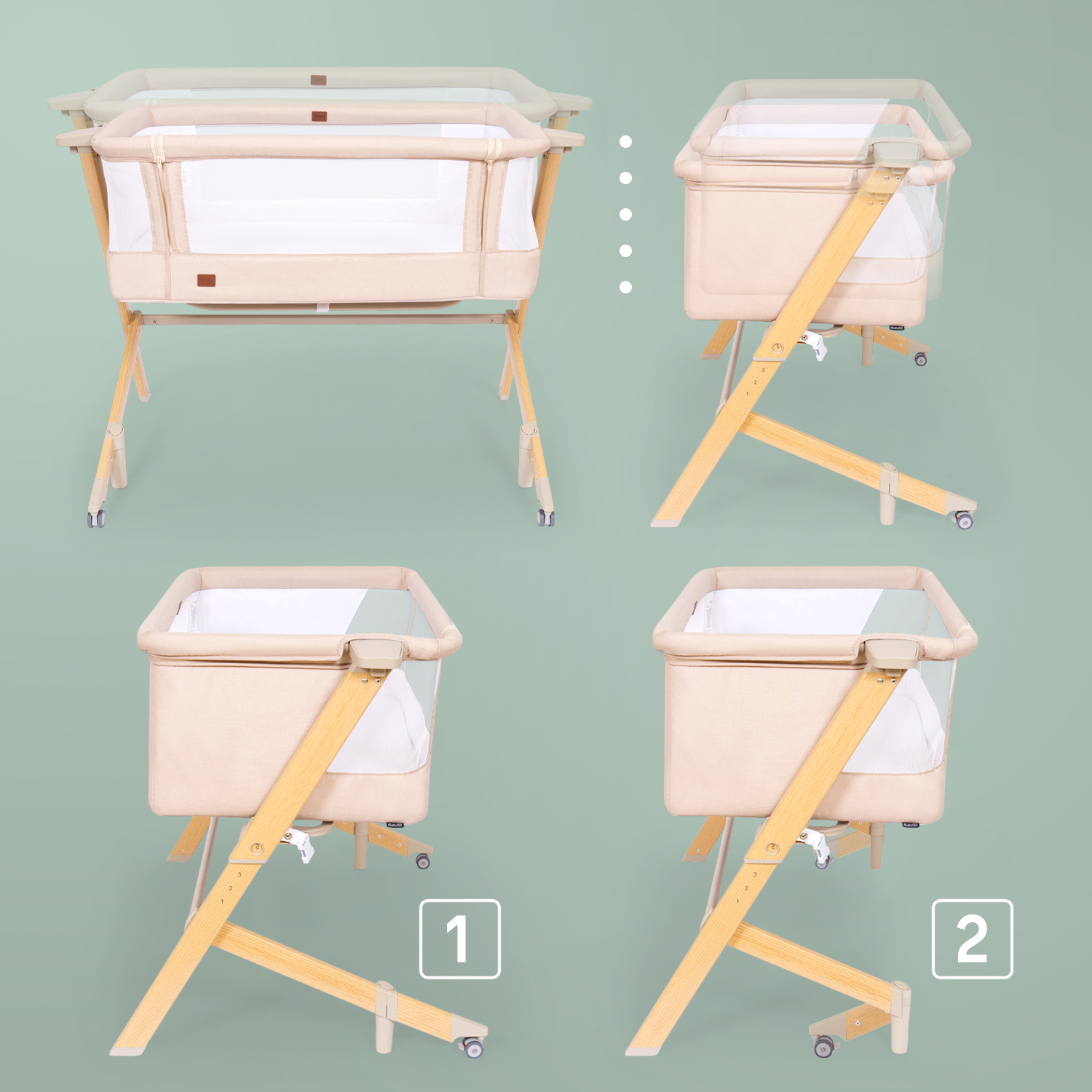 Здоровый сон новорожденного младенца — заветная мечта молодых родителей, исполнить которую поможет приставная колыбель Accanto Dalia. Размеры колыбели оптимальны для детей в первые шесть месяцев жизни и рассчитаны на то, чтобы обеспечить ребенку комфортное положение и одновременно чувство уюта и защищенности. Возможность изменять наклон ложа до 175° очень важна для полноценной вентиляции лёгких новорожденного и профилактики срыгиваний. Поскольку ничто не может компенсировать удалённость от мамы, предусмотрен режим совместного сна: можно снять боковую стенку и придвинуть колыбель к родительской кровати, зафиксировав её специальными ремнями. Для удобства использования предусмотрены пятиуровневая регулировка по высоте и колёса со стопорами. Колыбель легко разбирается и компактно складывается в практичный чехол, благодаря чему она незаменима в путешествиях.