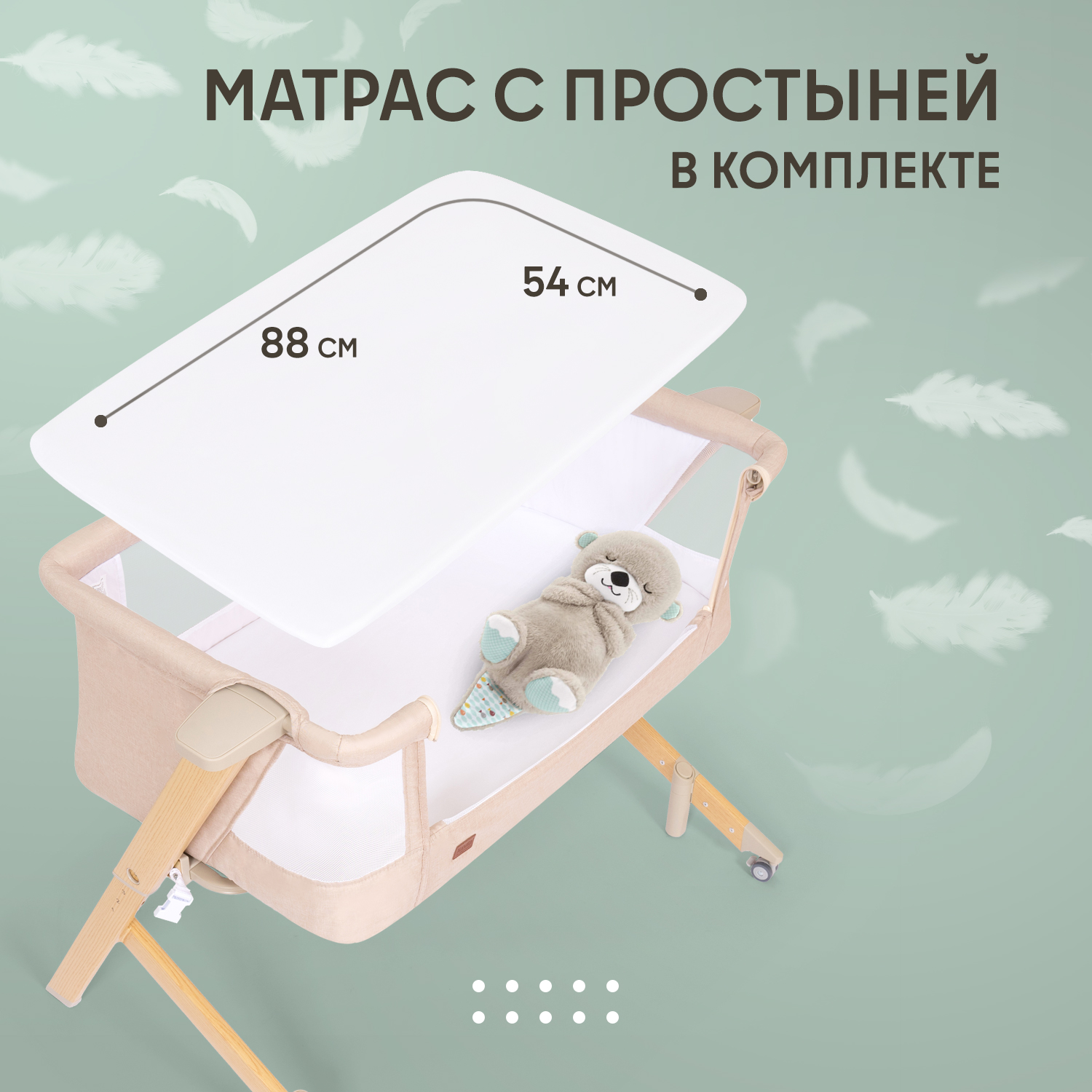 матрас полиуретановый, простыня на резинке, чехол для переноски, ремень для фиксации с родительской кроватью