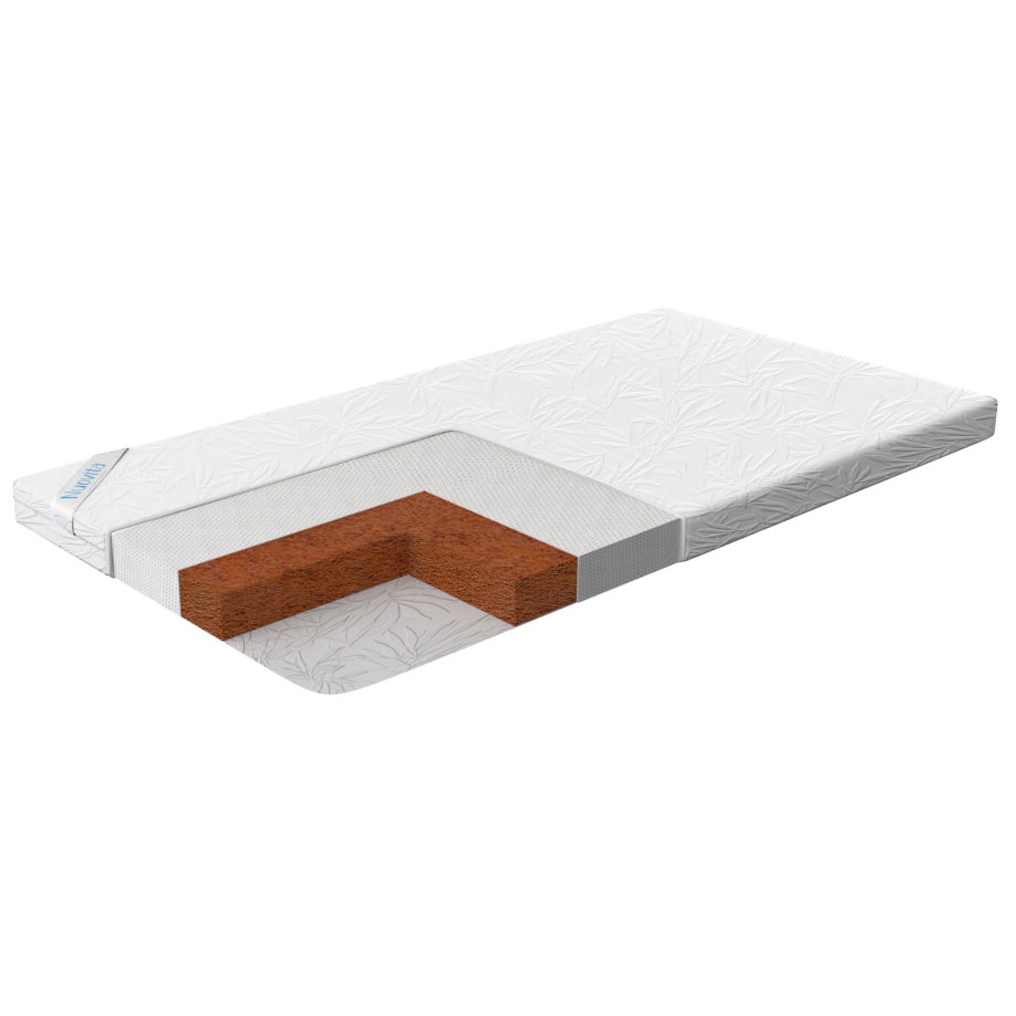 Детский матрас Nuovita Coco. Максимальная нагрузка на матрас 30 кг. Состав наполнителя: кокос 6 см + спанбонд. Жесткость матраса "выше среднего". Чехол матраса съёмный, выполнен из стеганного трикотажного полотна.