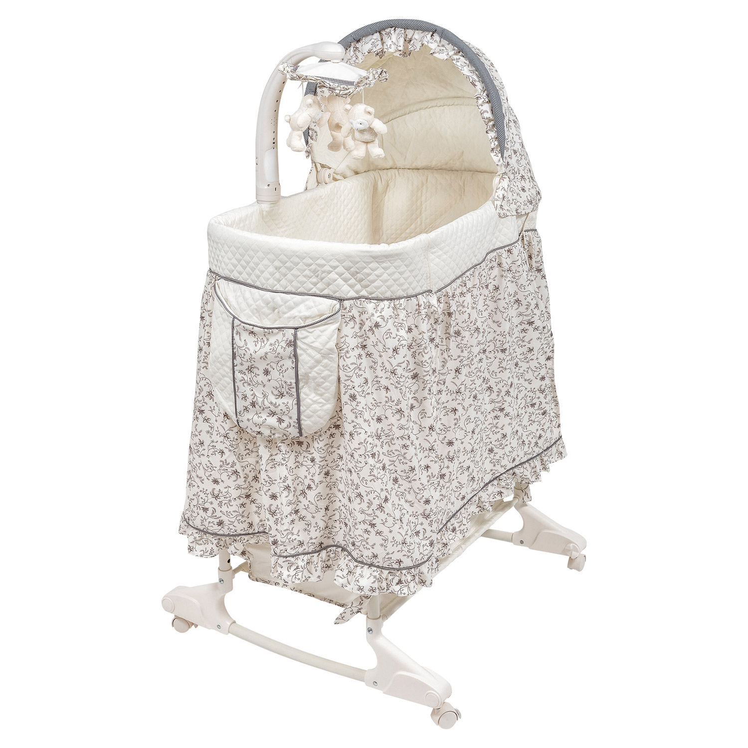 Приставная колыбель Simplicity 3 в 1 с электронной системой укачивания, релаксирующими мелодиями, световыми эффектами и съемными подвесными игрушками.
