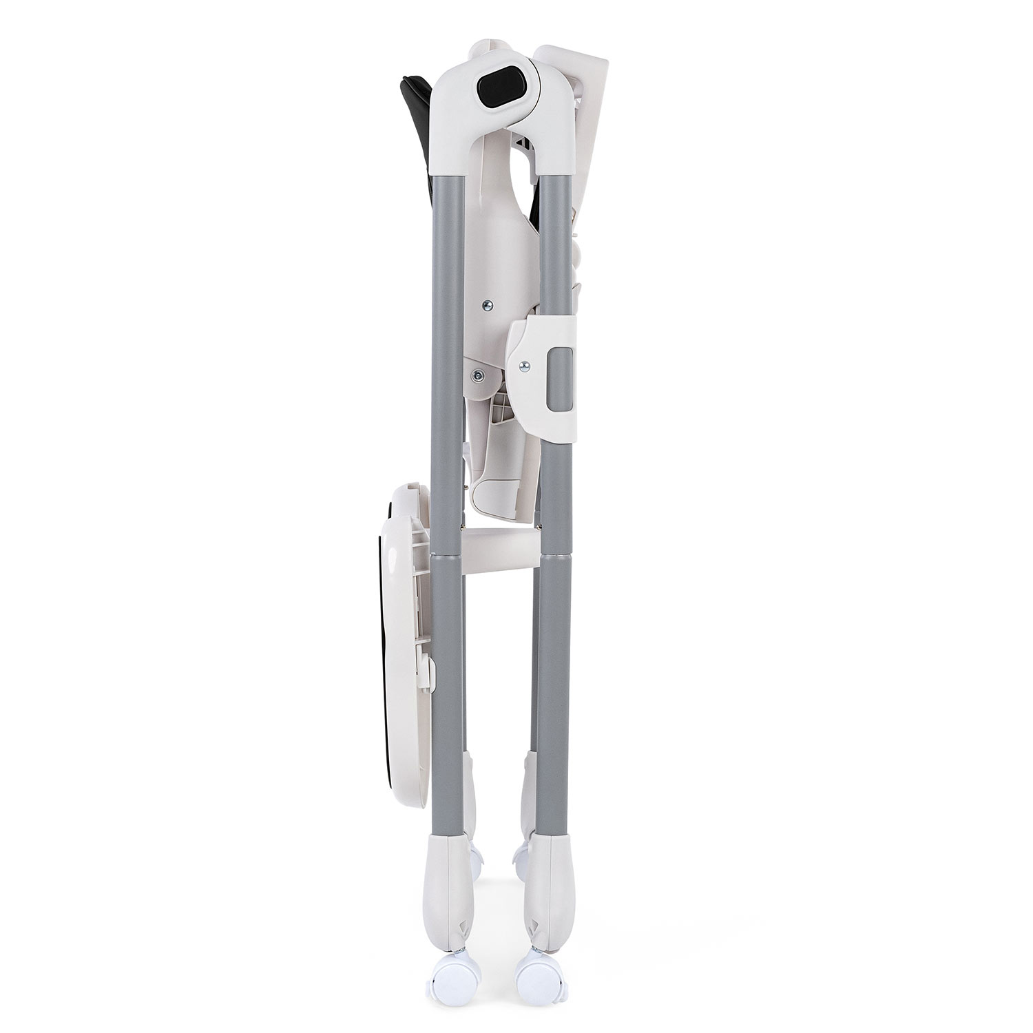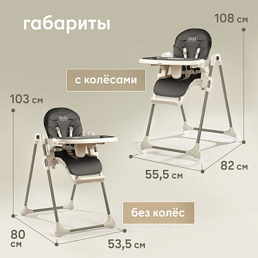 Благодаря четырем колесикам (они все оснащены «стопорами») стульчик легко перемещать по комнате, а при необходимости их легко можно снять. Но даже при полностью снятых основных колёсах на задней раме данного стульчика для кормления имеются два небольших дополнительных колёсика, что позволяет передвигать его, аккуратно наклонив его в положение «спинкой на себя».