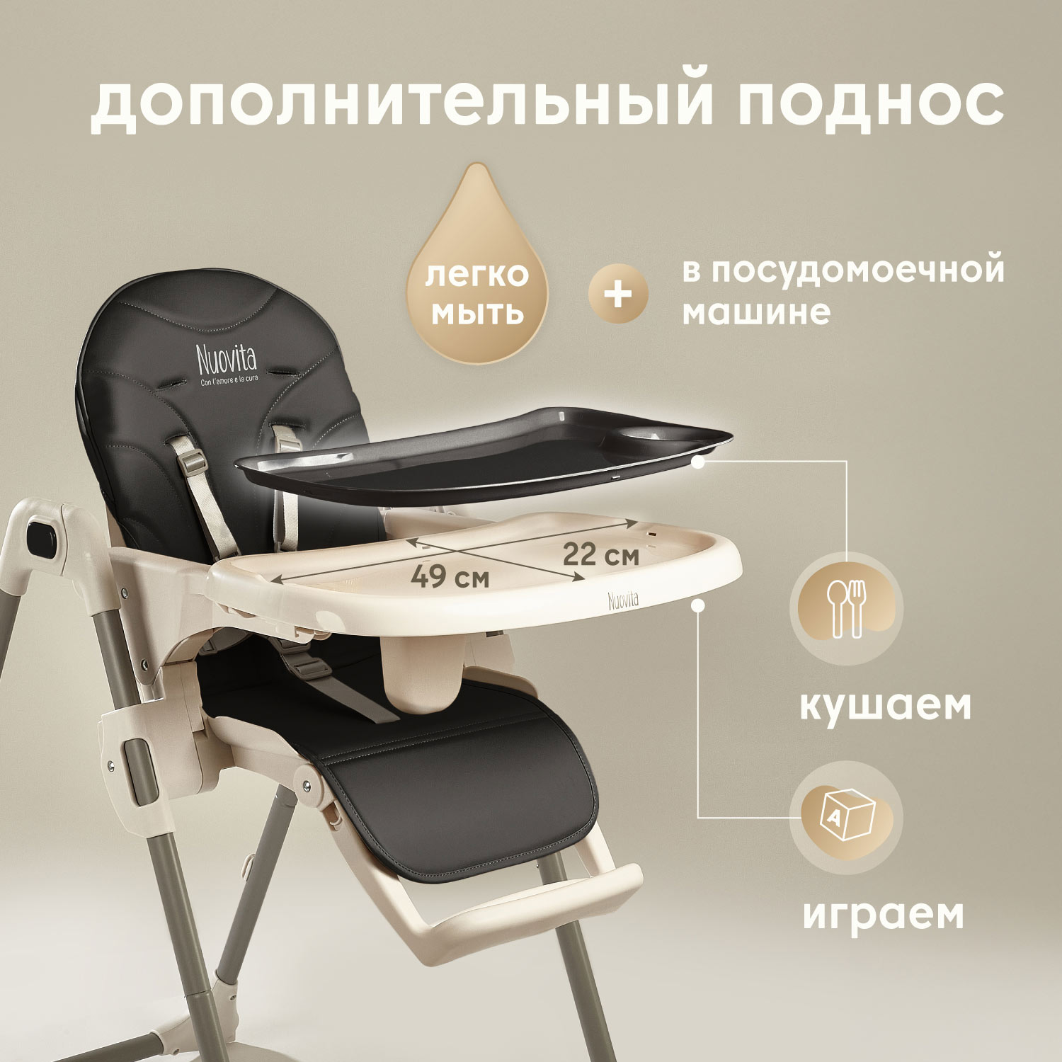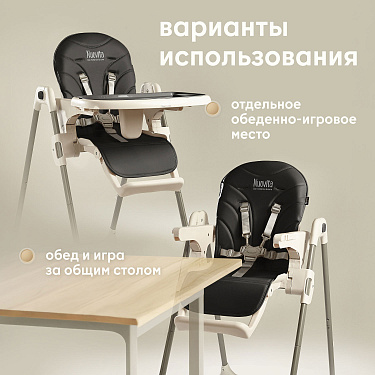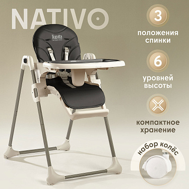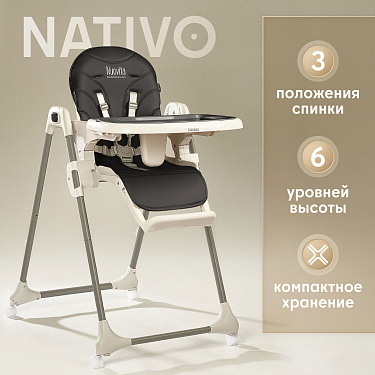 Детские стулья для кормления NATIVO предназначены для детей в возрасте от шести месяцев до трех лет. Материал сиденья — современная эко-кожа, долговечная и неприхотливая в уходе: для поддержания стульчика в чистоте достаточно просто протирать его после использования мягкой влажной тканью. Данный стульчик имеет двойную столешницу и оба её уровня полностью съёмные, что также облегчает процесс ухода за ними. Верхний поднос оснащён круглым отделением для поильника и используется при кормлении, а нижний предназначен для игр или рисования.