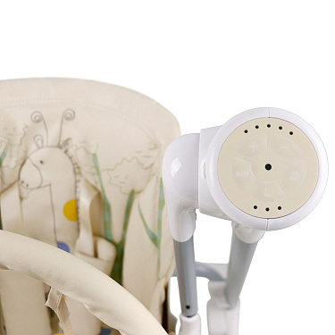 Электрокачели снабжены бесшумным маятниковым механизмом, который позволяет плавно и равномерно укачивать малыша, развлекая его и успокаивая. Они имеют две позиции регулировки спинки кресла, для того, чтобы как можно удобнее расположить ребёнка и надёжные 5- точечные ремни для безопасной фиксации малыша.