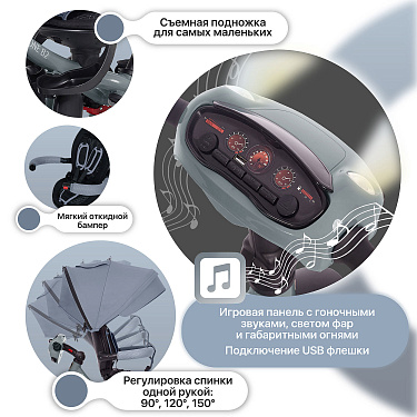 Детский трёхколёсный велосипед Bamzione B2 — настоящий универсал премиум-класса среди трехколесников. Адаптивная конструкция, повышенный комфорт и безопасность позволяют использовать его детям от года до 3-х лет, подстраивая под запросы ребенка. Эта модель удобна для всех: родители контролируют движение с помощью телескопической ручки, а малыш учится крутить педали и концентрировать внимание. Удовольствие от прогулки усиливают реалистичные спецэффекты, которые создает свето-музыкальная панель Porsche Design.