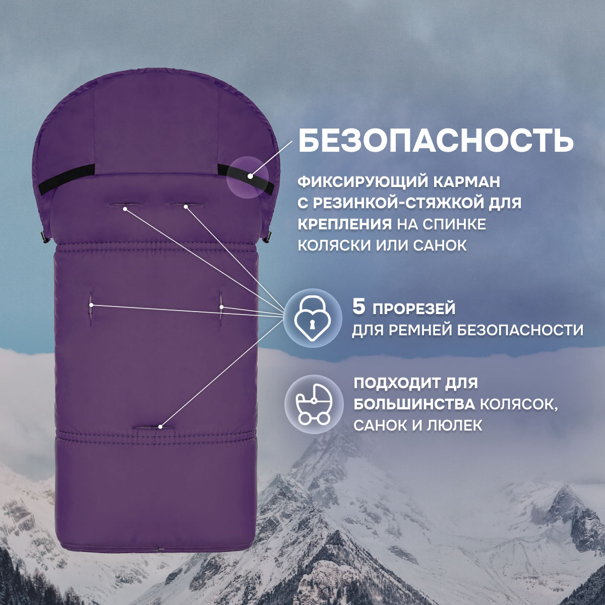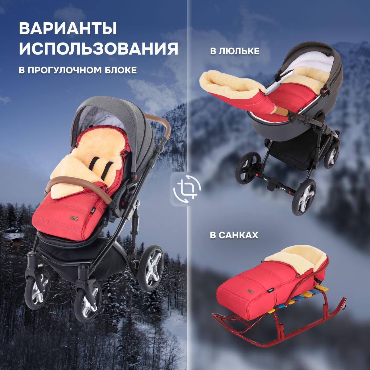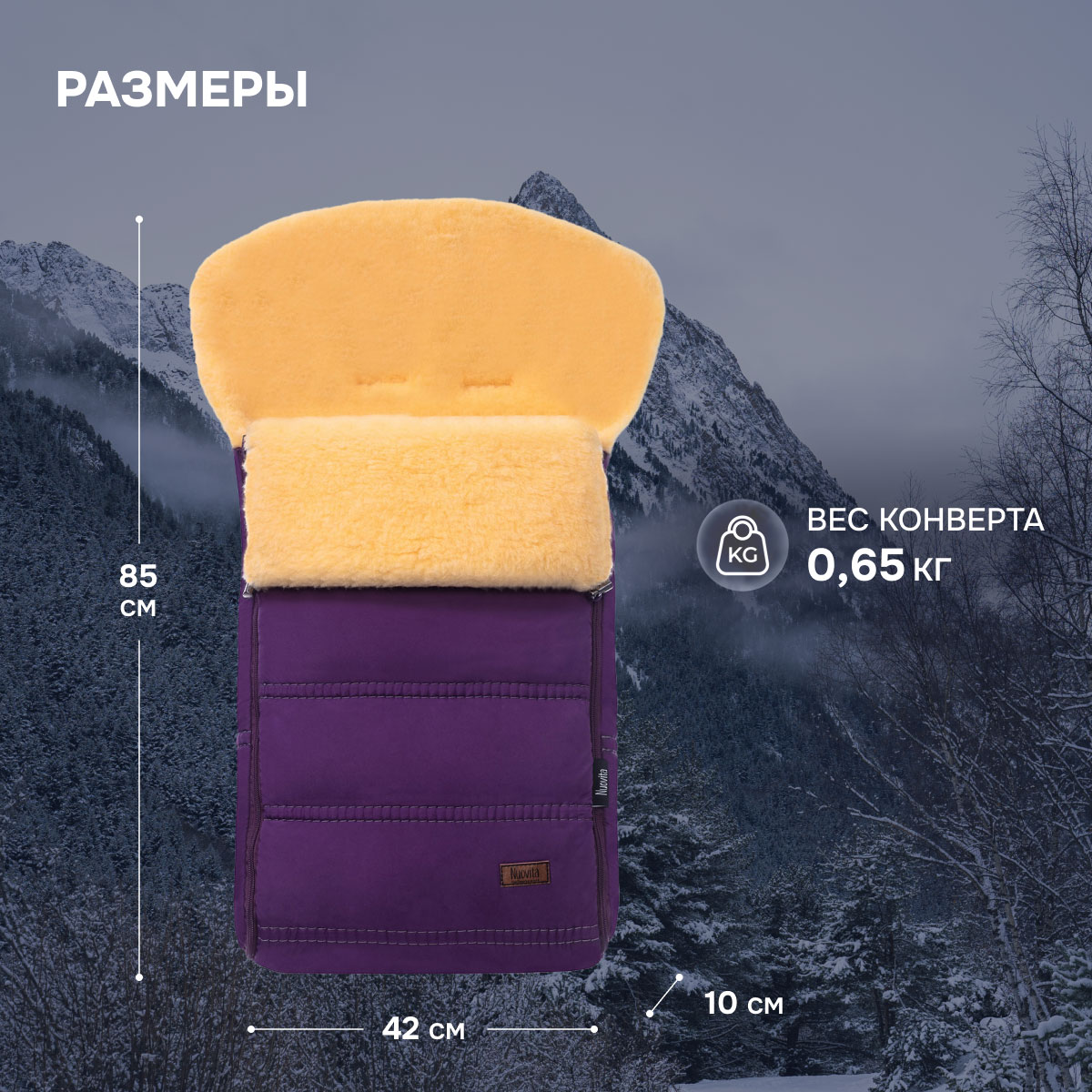 Основа конверта — смесовая овечья шерсть, которая имеет густой и теплый ворс высотой 12 мм. Благодаря природным качествам шерсти внутри конверта обеспечивается оптимальная терморегуляция. Слой синтепона создает дополнительную мягкую прослойку, не утяжеляя изделие (вес конверта всего 0,65кг).