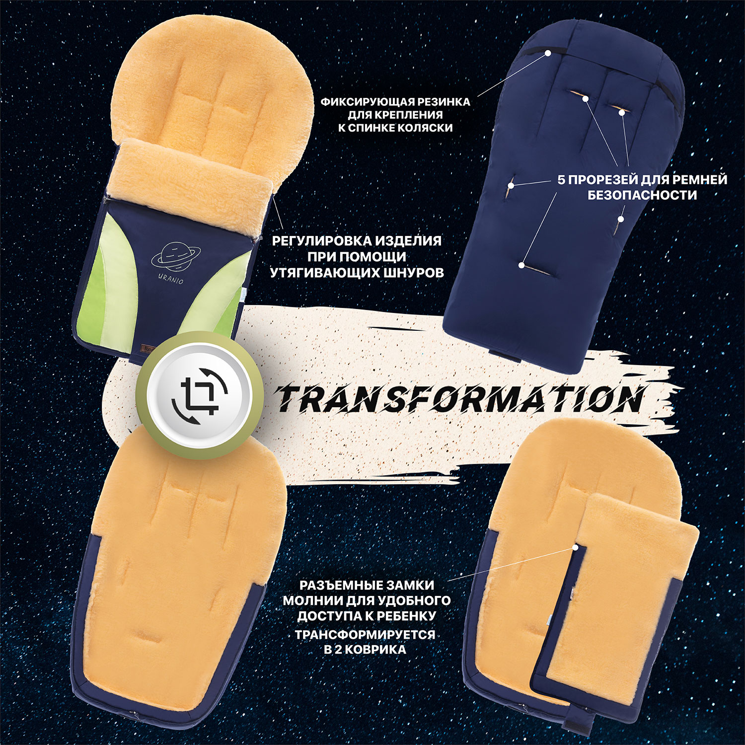 • Примечание: отверстия на спине для ремней безопасности. Крепление для прогулочной коляски, чтобы конверт не сползал. Отворот фиксируется пластиковыми зажимами. Передняя часть отстегивается, можно использовать, как две подстилки .