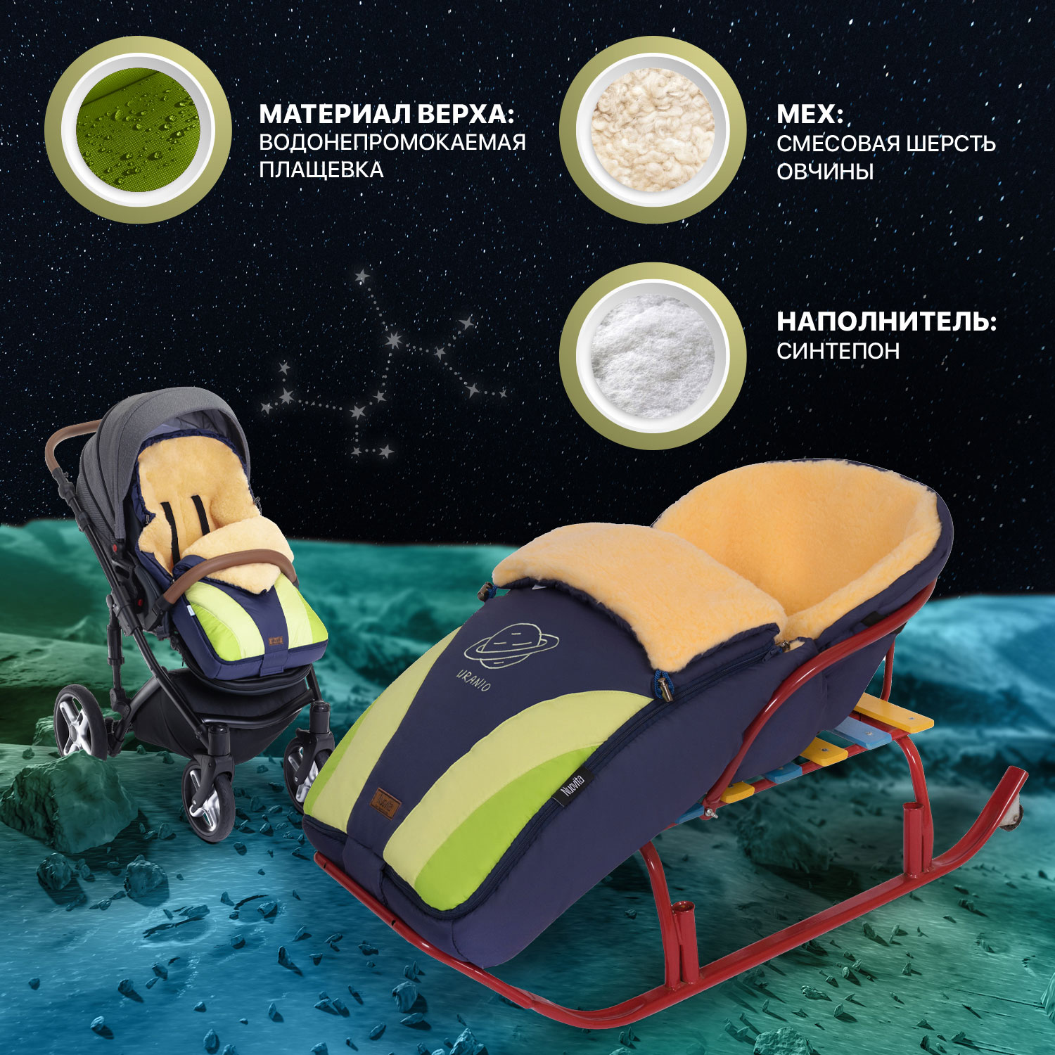 Внутренняя часть конверта выполнена из смесовой овечьей шерсти и имеет мягкий объемный ворс высотой 12 мм. Шерсть является природным терморегулятором, поддерживает оптимальный температурный баланс и способствует спокойному здоровому сну ребенка. Слой синтепона создает воздушную прослойку, не утяжеляя изделие, вес которого составляет всего 650 грамм.