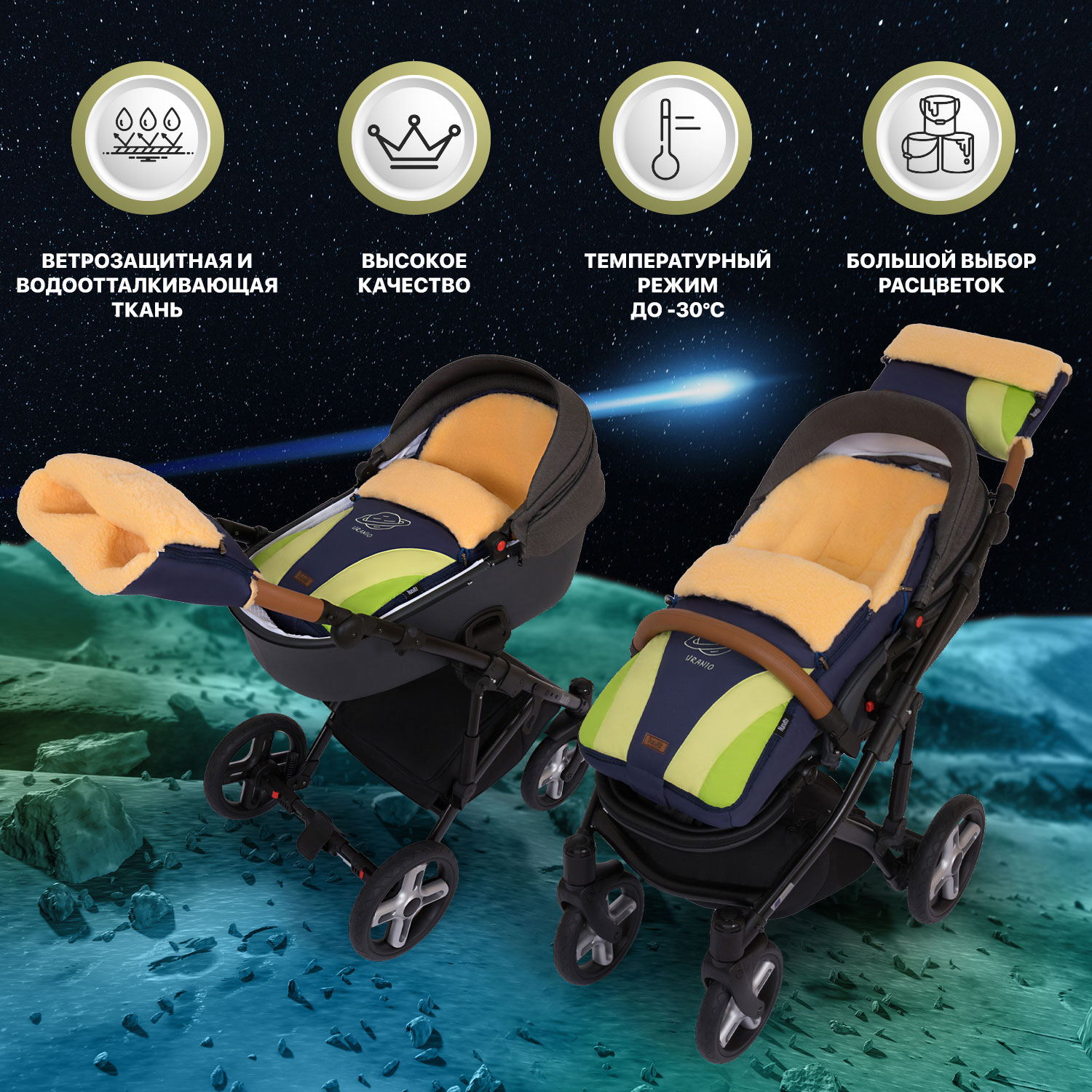 В полотне спинки имеются прорези, рассчитанные под пятиточечные ремни безопасности, а крепление за спинку сиденья коляски исключает сползание конверта во время прогулки. Полностью расстегнув конверт, можно получить коврик, который будет удобно использовать на прогулке или в машине. Детские меховые конверты серии NUOVITA COSMO предлагаются в 5 вариантах красочных цветовых сочетаний. Каждое изделие украшено вышивкой с изображением планеты и запоминающимся логотипом.