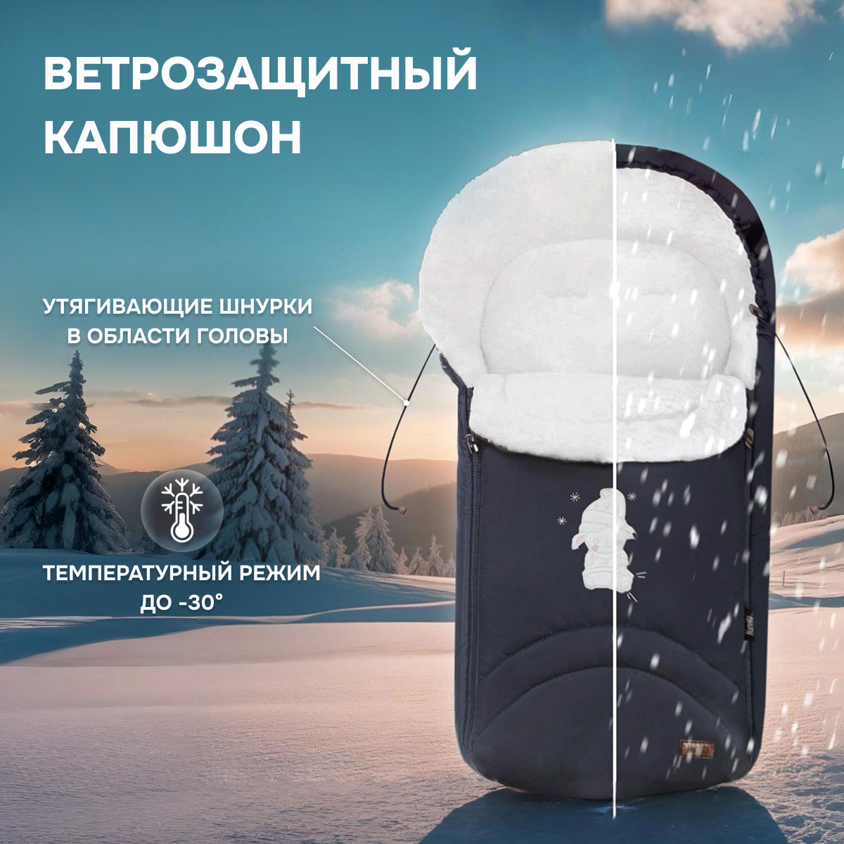 Конверт является надежной защитой для малыша во время долгих прогулок в холодное время года. Он не стесняет движ