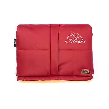 Внутри муфты находится высокий пушистый мех, который представляет собой смесовую овечью шерсть на текстильной основе. Он имеет высоту 12 мм и создает объемную воздушную прослойку, отлично удерживающую тепло даже при сильном морозе (изделие рассчитано на применение в диапазоне температур от 0 до -30 градусов).